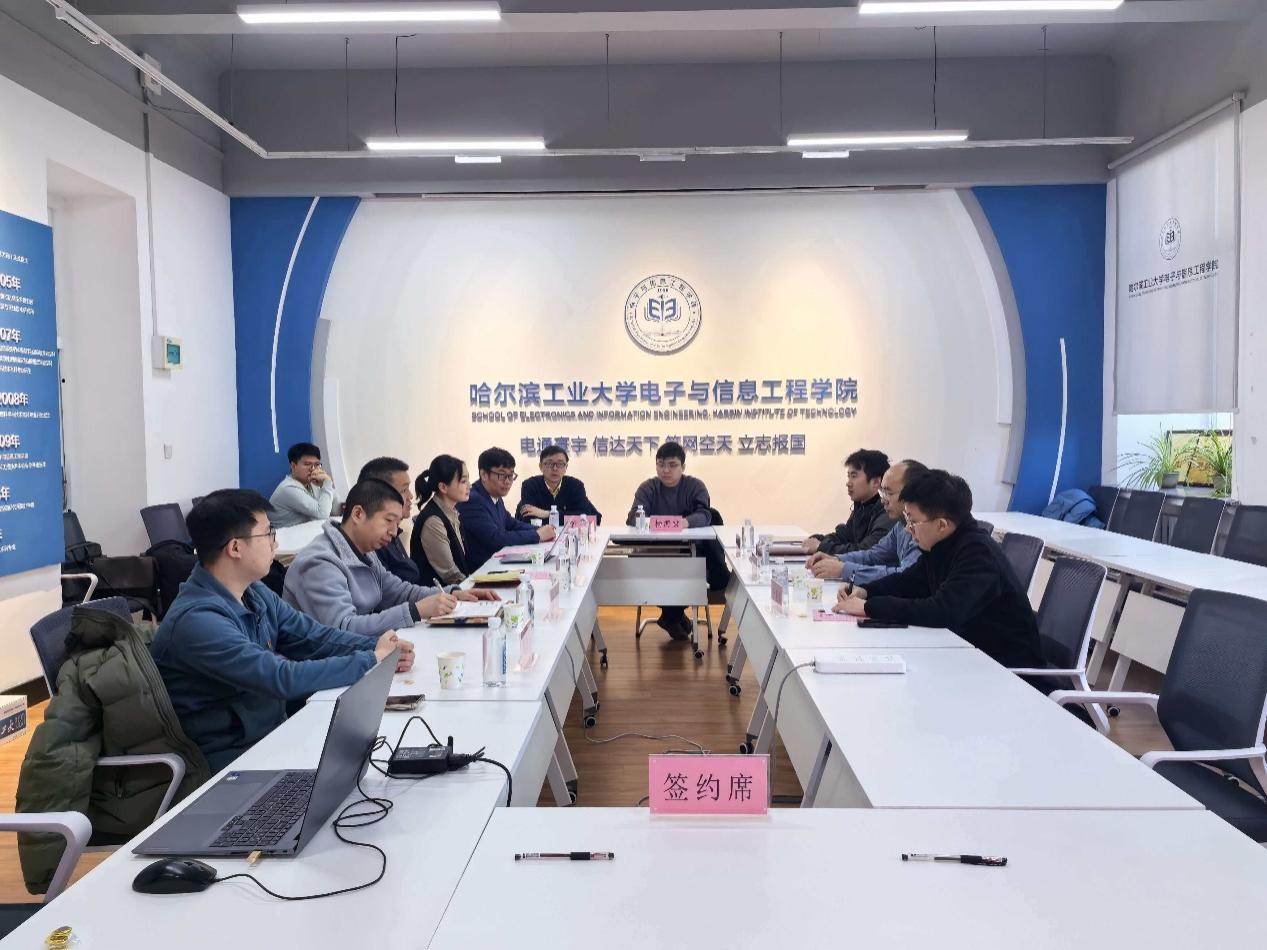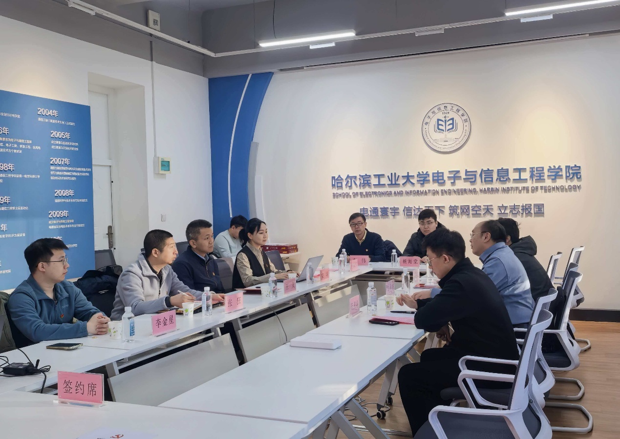 为深入学习贯彻习近平新时代中国特色社会主义思想,实现基层党组织工作互动、资源共享、优势互补,促进校企间党建经验交流和科研合作,电信学院微波工程系师生联合党支部与中国电科33所联合实验室党支部于2025年12月11日在哈工大举行了共建签约仪式。中国电科33所联合实验室党支部书记、常务副主任王月祥,联合实验室平台主管马卫海,联合实验室国际合作经理于星华,电信学院党委书记王义,微波工程系师生联合党支部书记张狂及微波工程系师生联合党支部教师代表共同出席仪式,微波工程系主任宗华主持仪式。